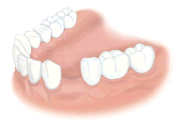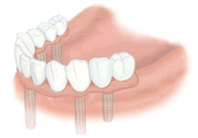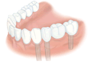 数本のインプラントにより支えられるブリッジかクラウンにより、機能と顔立ちが回復します。